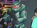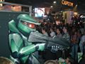 Well, our plans of bringing you from-the-floor updates were dashed by the amazingly unconnected Convention Center... but better late than never, right? Bungie had a sizeable presence in the huge Microsoft section - 6 solo player rigs and 2 four-player split-screen multiplayer boxes (playing each other in CTF), with huge numbers of fans cycling through and getting a taste. Stability was good - there were no hard crashes, though an odd bug turned up in the build in use; 3 or 4 times over the course of the day, a player would jump into a jeep, and get stuck. The camera could be rotated, but the player couldn't drive, or shoot, or get out - the box would need to be rebooted. Always nice to get a few hundred beta testers to run through your latest build, to find new stuff to fix! The team is very confident that they'll be ready for the November 8 Xbox release.